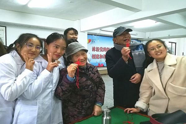 顶着瑟瑟寒风,30名志愿者来到了新都区静雅养老院。换上白大褂,代表一名合格的医学生。在老人们热烈的掌声中,志愿者们开始了表演,《大中国》手语操、合唱《相亲相爱》以及《栀子花开》,一个接一个,应接不暇,多姿多彩,带给在场的老人无尽的欢乐。老人们也被志愿者的热情所感染,陆续走上舞台,深情演唱革命红歌。之后,志愿者给老人们分享了医学保健及养生知识,给老人测量血压,给老人们带去了快乐与精神保障。在欢笑声中,大家一起编中国结,一个个红红火火中国结给老人们带去了无限的留恋。