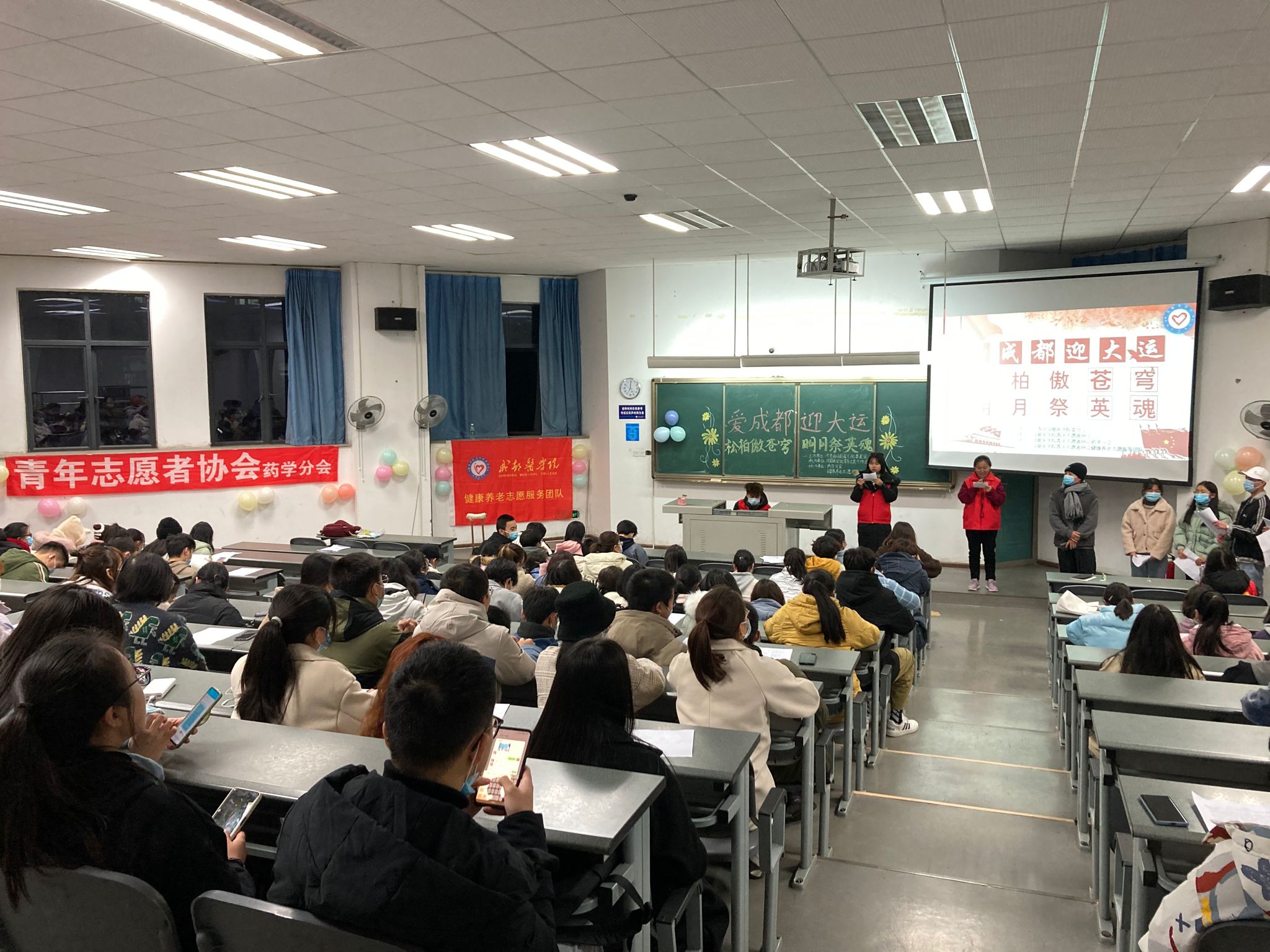 基于此,2020年12月10日,成都医学院青年志愿者协会健康养老志愿服务团队和药学分会携手,在四川养老与老年健康协同创新中心的大力支持下,在博学楼教室A208举办了以“致敬爱国者,感恩和平”为主题的公祭日朗诵活动。