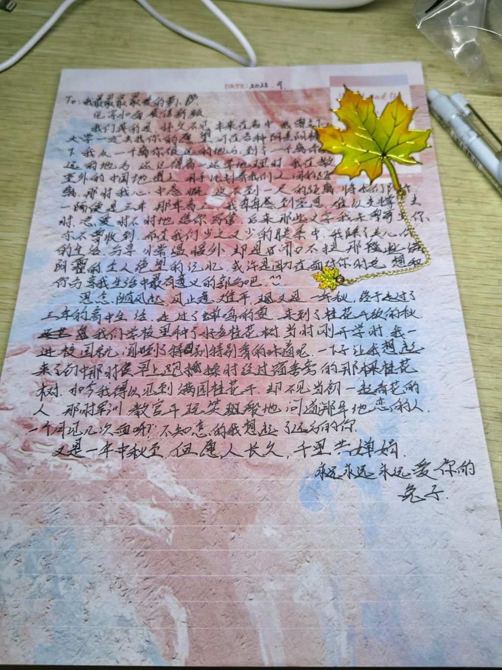 拾叶为签凝秋韵,援笔成信诉别情