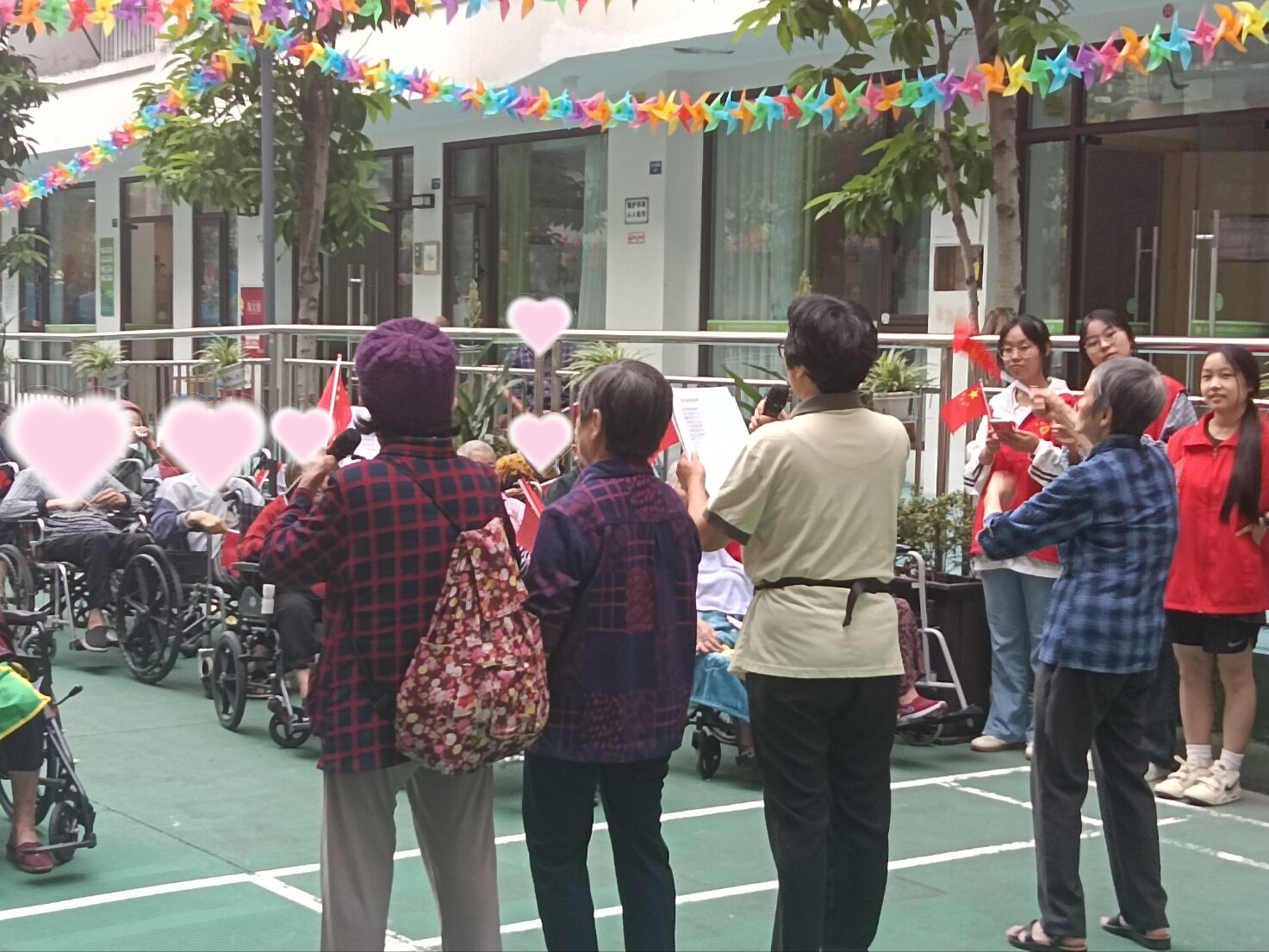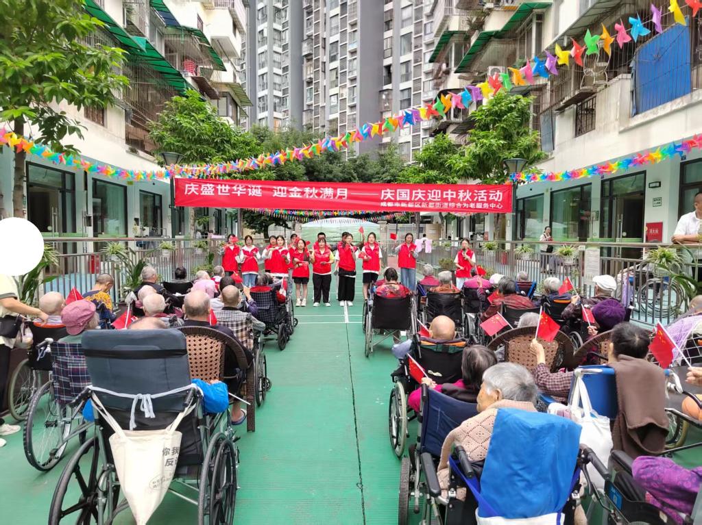 国庆红旗漫卷,中秋明月流辉。当国庆的欢歌与中秋的雅韵交织,在这养老院的一方天地,志愿者注定会与老人共沐家国温情,让安康与喜乐,在时光长河里潺潺流淌。为缓解老人节日孤独感,丰富其精神文化生活,同时传承中华优秀传统文化、弘扬敬老爱老美德,让老人感受家国发展的喜悦与社会关怀,成都医学院老年健康学院健康养老志愿服务团队于9月30日举办“情暖双节,艺润桑榆”养老院庆国庆迎中秋文艺表演活动。