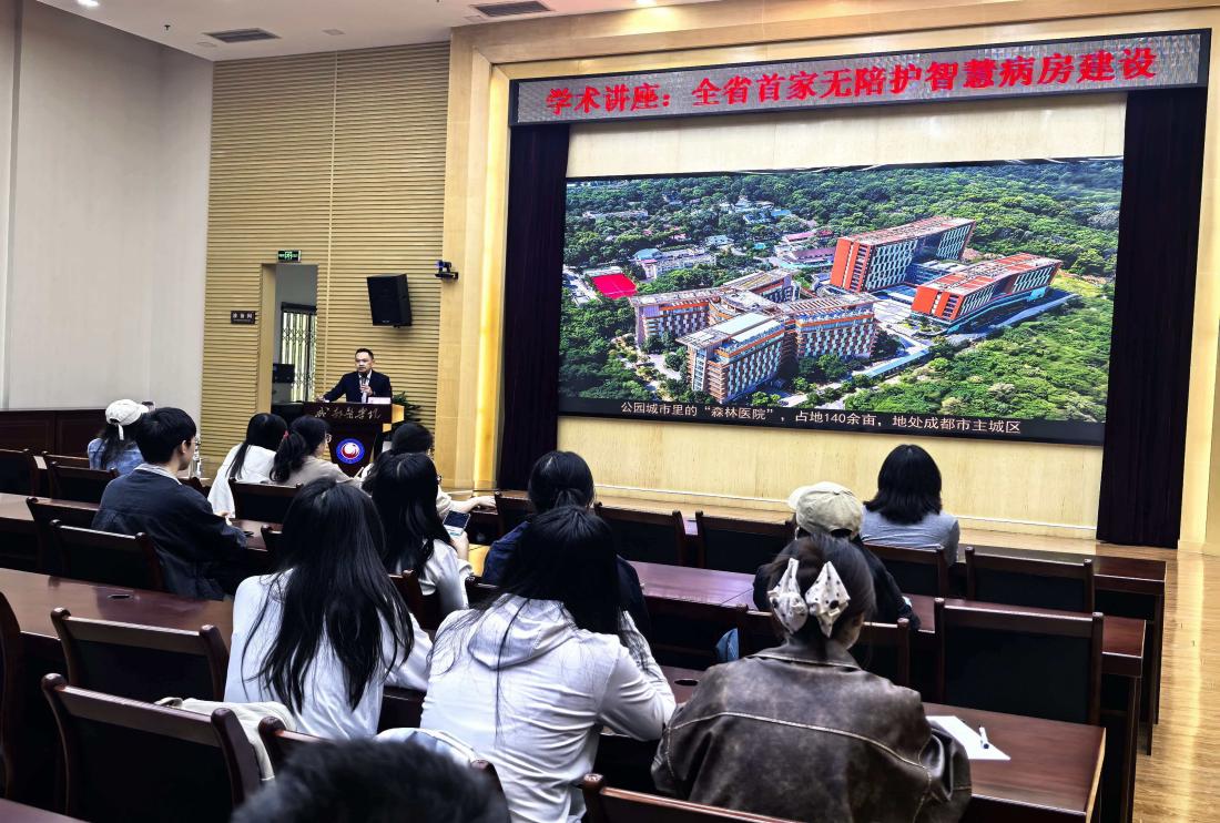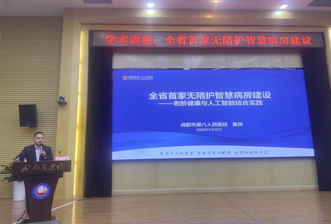 2026年4月22日,成都医学院老年健康学院、智慧医养与老年健康管理重点实验室在多功能厅举办了“全省首家无陪护智慧病房建设——老龄健康与人工智能结合实践”学术讲座。本次讲座特邀成都市第八人民医院(成都医学院附属老年医院)院长晏殊担任主讲嘉宾。